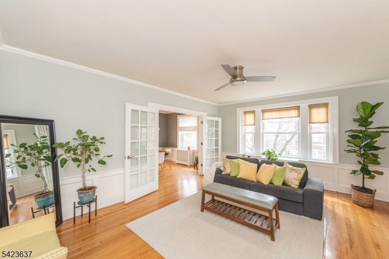 The largest unit in the complex! At (approx.) 1189 sqft., this corner residence comes brimming with pre-war architectural craftsmanship. Located on a quiet tree-lined street just a turn away from the cultural heart of Bloomfield Avenue, the 3-bedroom residence (captive 3rd) at the Park Center community of classic elevator buildings was last seen on the market 10 years ago. Southern exposures bring natural light through oversized windows, illuminating the warm interiors honoring its period heritage: original hardwood floors, wainscotting and chair rails, high ceilings, moldings,and transoms. Its coveted position puts Bloomfield with the best of New Jersey along with the celebrated towns of Montclair and Glen Ridge nearby. A true University town, you are amidst a tableau of acclaimed dining, museum and fine galleries, sophisticated boutique and chic shops, surrounded by serene open spaces and lush green grounds of popular Brookdale and Watsessing Parks. Some say this trifecta neighborhoods feel like Brooklyn, others say the Up.West Side. Simply call it home. For the metropolitan lifestyle, connectivity is seamless - direct NJ Transit and Bus services to NYC, and convenient access to the highways ensure that the energy of Manhattan is never far, and the suburban calm always awaits your return.1st timers, downsizers, pied-a-tierre needs - this just might be it! Coin-op laundry on site, assigned storage, 1 parking $25) &1 gar space ($65/mo), pet friendly.