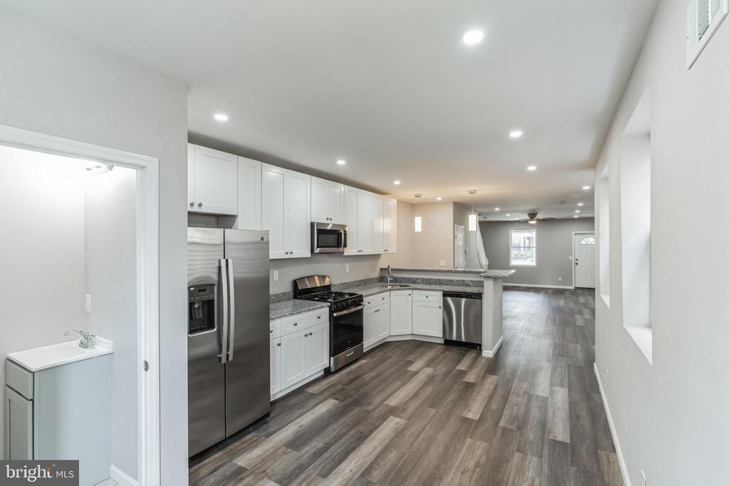Stunning!! This 4 bedroom, 3.5 bath home has been totally remodeled. The spacious living and dining areas are complimented by the modern kitchen with stainless steel appliances and granite counter tops. A powder room is conveniently located just off the kitchen. Step into the living room from the front porch to an open floor plan providing a clear view all the way to the rear door and access to the back yard. The walk out basement is fully finished providing storage and livable space. A bonus room can be used as a 4th bedroom or office. A full bathroom completes the basement. Central air keeps the entire property cool all season long. The 2nd floor has 2 ample sized bedrooms and a new full bath. The main bedroom boasts its own full bath. All new lighting fixtures through out. And don't forget all new doors and windows!!!