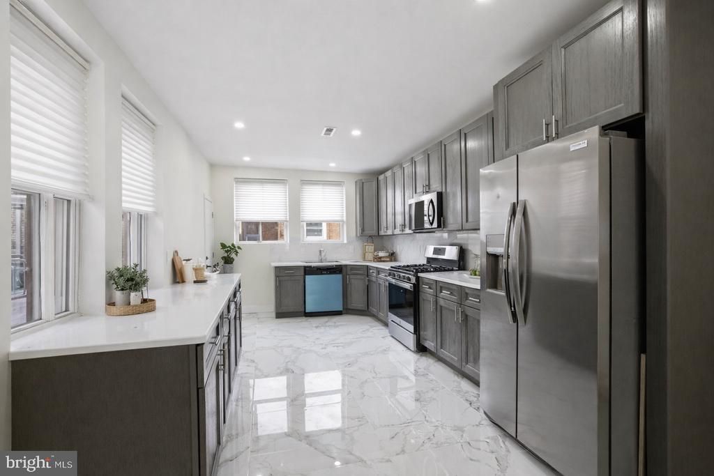 Welcome to this beautifully renovated home located in the highly desirable West Oaklane neighborhood. Just minutes from major roadways and public transportation; perfect for convenient city living. From the moment you arrive, you’re greeted by a front patio, ideal for morning coffee or evening relaxation. Step inside to an open and airy living and dining area, thoughtfully designed for both everyday comfort and entertaining. The modern kitchen is a true highlight, featuring stylish cabinetry and a full suite of stainless steel appliances, including a refrigerator, stove, microwave and dishwasher. The second level offers three generously sized bedrooms, including a spacious primary suite complete with a private ensuite bathroom. An additional full bathroom is conveniently located in the hallway, serving the remaining bedrooms with ease. The finished lower level adds incredible versatility with walk-out access to the rear driveway. This space can be used as additional bedroom with closet space and a full bathroom. Lower level can also serve as a cozy living area, a home office, or a personal gym, the possibilities are endless. Laundry room is located on the lower level and is fully equipped with washer and dryer.