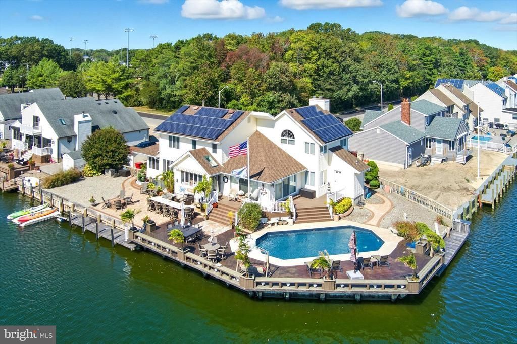 Magnificent and Immaculately kept Custom Built Home with 193' of Prime Waterfront on a corner lot in Prestigious ''Berkeley Shores'' section of Bayville. Situated on a wide lagoon with water on two sides of the property. Double Trex Decking, Paver Patio, In Ground Pool, Outdoor Kitchen, 2 Docks and Heated and Aired Outdoor Full Bath just to name a few of the outdoor features. Enter the Double Door Entrance into the 2 Story Foyer, the Open Floor Plan boasts plenty of room for large scale entertainment a Gas Fireplace, French Doors and Panoramic Views of the water from every angle. A Custom Eat In Kitchen with Breakfast Bar and additional Formal Dining Room, New Full Bath and Laundry room complete the 1st Floor Four Large Bedrooms featured on the 2nd Floor All with Water View includes a Spacious Master Suite w Gas Fireplace, WI Closet & New Full Bath. A Pull-Down Attic and Plenty of Closet Space. Whole House Generator, New Roof w Pre-Paid Solar Lease, Massive Driveway & 2 car Garage.NO FLOOD INSURANCE NEEDED. Close to Shopping, Restaurants and Parkway. To many amenities to mention, look at the Special Features at the end of the pictures to see all this home has to offer. ( Can be offered Fully Furnished)