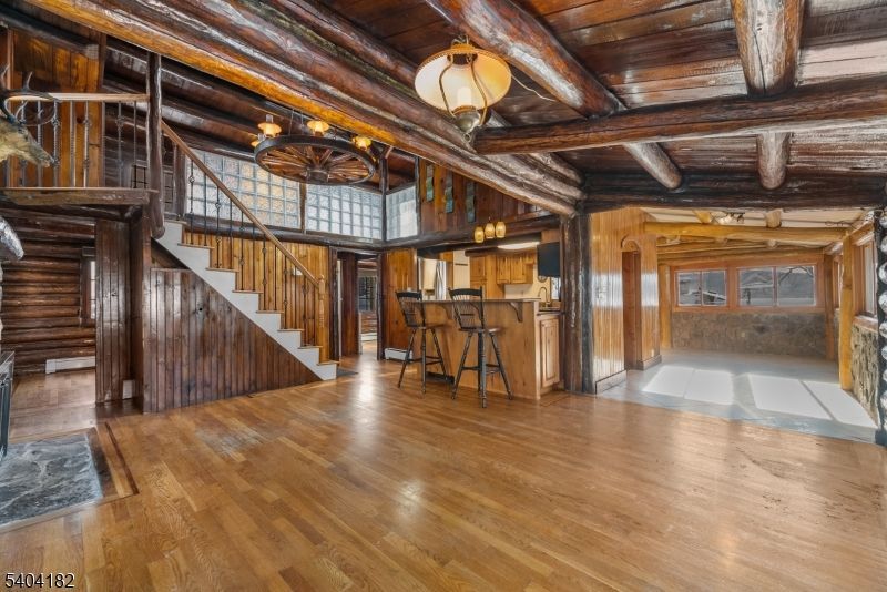 Welcome to 7 Mac Donald Rd a charming log-cabin style single-family home for lease in the heart of Hewitt, NJ, offering rustic character with everyday convenience. This cozy residence features 2 bedrooms, with one being a loft, 1 full bath, hardwood floors, an updated kitchen, and a beautiful stone fireplace that anchors the living space.Enjoy lakefront access with views of Greenwood Lake and Browns Point, perfect for kayaking and year-round outdoor enjoyment. The landlord may provide access to canoes and kayaks on a case-by-case basis.Comfort features include oil heat, baseboard heating, window A/C units to be installed by the landlord, and in-unit washer and dryer located in the garage. Driveway parking included. Pets are allowed (cats and small dogs).The property is located on a quiet street just off the main road with NYC bus access at the top of the road. The landlord plans to renovate the deck and stairs with Trex decking later this year and will enclose the area beneath the deck for additional tenant storage.Tenant responsible for electric and oil utilities. One-year lease term.