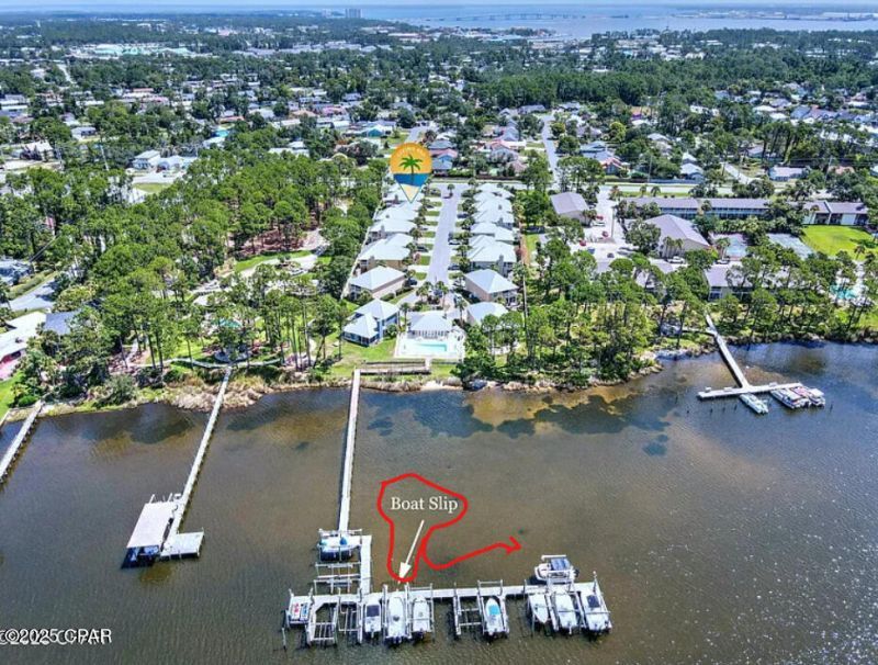 REDUCED! MOTIVATED SELLER! HOA IS 800. 00 a quarter. This is a beautiful updated home on North Lagoon! This home is packed with value, comfort, and coastal living perks. Located in a very desirable neighborhood with low HOA dues, community pool, and a club house for entertaining. Boat slip included with a lift. Hop on your boat and spend a day of fishing in the gulf or a day at Shell Island. House includes a 7 person hot tub. This neighborhood is in a great location on the popular street of North Lagoon. Insidethere are many updates. In 2024, $30,000 was spent on new impact windows creating energy efficiency and storm protection. Home includes a Tankless gas hot water heater, gas stove, and gas fireplace. There is a 16 seer AC unit (2019) and 2. 5 ton heat pump system for the downstairs(2023). Down stairs has a very spacious living area and a remodeled kitchen and a nice dining area, perfect for all gatherings. This 3 bedroom 2. 5 bath home has a large bonus room with a cozy sunroom attached, ideal for family fun, a home office, or a guest space. Don't miss this opportunity to own a move in ready home with many upgrades with waterfront access. All measurements are approximate. Please measure if important.