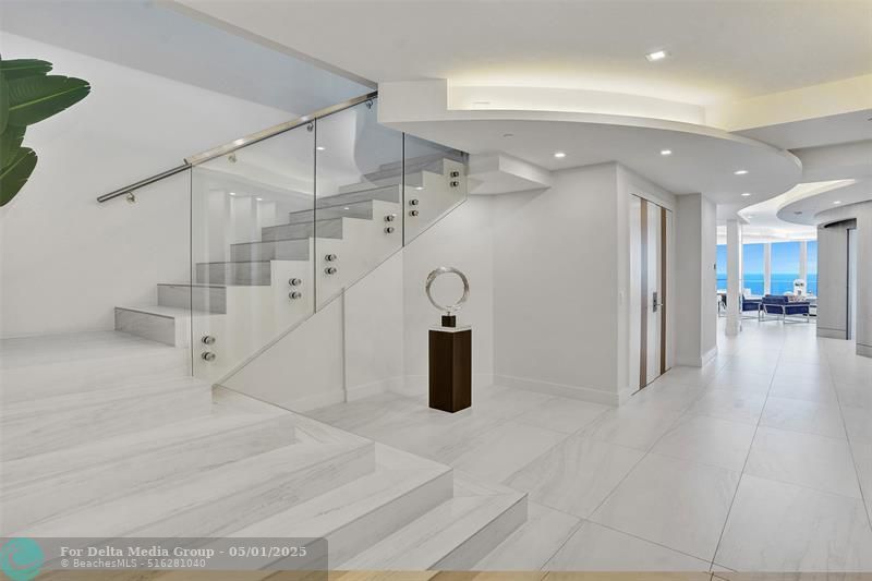 Experience luxury in the sky with this one-of-a-kind, fully furnished two-story PENTHOUSE offering unparalleled panoramic views of the Atlantic Ocean. Spanning 5,525 sq ft of interior living space and an expansive 5,360 sq ft of outdoor terraces. The 2nd floor offers a private office and a sophisticated lounge area. Dramatic nearly 11-foot ceilings paired with floor-to-ceiling glass walls capturing sunrises, sunsets, and endless blue waters. Enjoy 3 private elevator entrances, a wrap around balcony, a rooftop terrace complete with a private pool and a built-in summer kitchen. Designed for both grand entertaining and private relaxation. This spectacular penthouse offers a private cabana, three premium private parking spaces, and an AC storage unit.