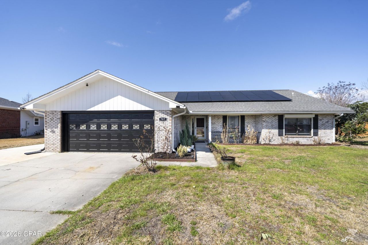 Well maintained home on a half acre lot with a backyard oasis!! When you walk through the front door, the inviting living room with gas fireplace and vaulted ceilings greet you like a warm hug! From there, you can easily access the spacious, updated kitchen that features stainless steel appliances, tile backsplash and a standalone island with with an additional prep sink!! The primary bedroom features vaulted ceilings, an ensuite with double vanities and an additional space that would make a great office, nursery, craft room or so many other possibilities. There is another bonus room off of the living room which allow plenty of room for storage, a play room, gaming room or many other endless options! The screened in back porch leads to the phenomenal, very large and beautifully landscaped back yard. Here you will find a custom built deck, roughly 16 X 20 feet, that accentuates the above ground pool, making this a perfect setting to enjoy those hot summer days! There is a storage shed to keep your outside equipment in, freeing up room in the 2 car garage. All this is surrounded by a 6 foot wood fence giving you privacy to enjoy this well thought out sanctuary that is perfect for entertaining. The owners recently added an additional RV parking space to give you plenty of space for multiple vehicles, boats, etc, which extends into the back yard and behind the privacy fence. Not to mention this home is in a sought after neighborhood that has underground utilities, sidewalks, and is convenient to shopping, restaurants, entertainment, Tyndall AFB and more. This home will be rented without furniture. Ask about discounts for Active Duty Military. There is an additional monthly Power Fee as this home runs on solar. Leasing Agent will provide details during showings.