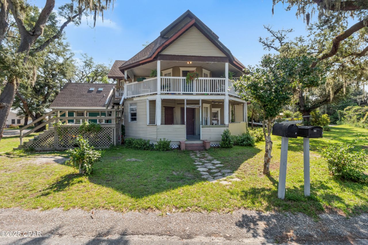 More than just a home, this victorian inspired-style property is the opportunity to create your own vision while maintaining a piece of authentic Florida history. Built at the turn of the 20th century, it has had a succession of eminent owners and custodians over the past 125 years, each contributing to its character while retaining its historic distinction. Heralded as one of the ''finest Victorian eclectic-style houses in Panama City,'' it is probably the only Folk Victorian home on the market in the city. This beautiful treasure stands proudly on an expansive quarter-acre corner lot beneath mature live oaks draped with trailing Spanish moss. Just a short walk from St. Andrews Bay, this remarkable home boasts water views from the second floor. Traditional balconies and porches provide generous areas for relaxing, reading, and entertaining, with fresh breezes enhancing the alfresco lifestyle. The first floor has been taken down to the studs and is ready for your vision, while the generous living spaces and multiple sleeping accommodations make this grand home versatile--ideal for a multi-generational family or a variety of other uses. The charming two-bedroom carriage house on the property provides a rental income potential from day one. The door opens into an open living room with wood flooring, a well-equipped modern kitchen, and a comfortable living room. Two bedrooms include a light-filled first-floor bedroom with large windows and a built-in closet. The second-floor bedroom oozes charm and character with skylight windows for stargazing and doors opening onto a small balcony. A modern bathroom with antique-style black fittings transitions old and new. Those looking for a prestigious home that's completely out of the ordinary with a legacy of history and opportunity will find this residence checks all the boxes. Located in the sought-after Beach Drive neighborhood, the home is currently pending a Historic Marker, requested by the Panama City Historic Society to be placed as part of the Sidewalk Improvement Project. This unique home is within easy walking distance to downtown coffee shops, restaurants, breweries, parks, festivals, and the farmers???????????????????????????????? market.
