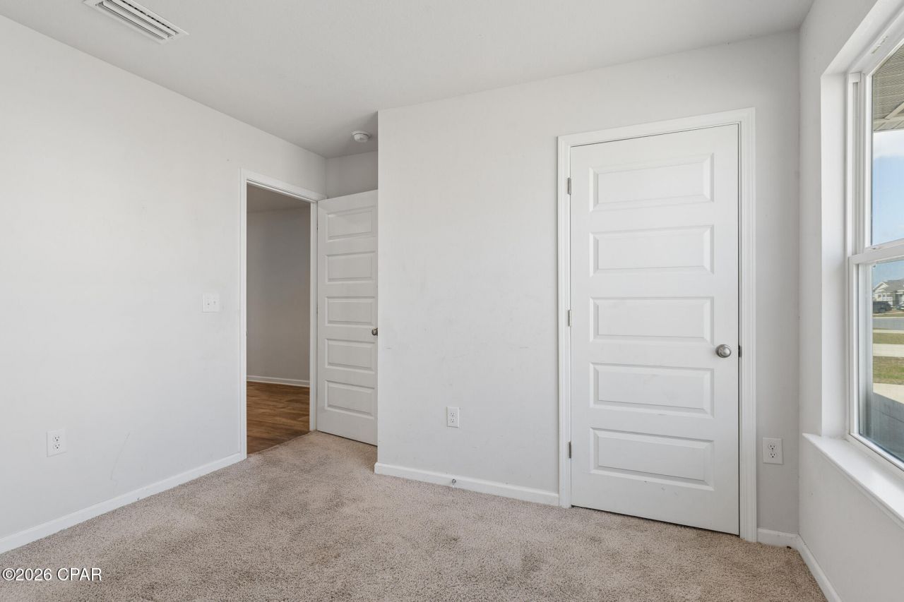 As you enter, you'll be greeted by quality paint with an orange peel texture and traditional 8' ceilings, creating an inviting atmosphere. The common areas feature durable vinyl flooring, while each bedroom has plush carpeting for added comfort. The open and spacious kitchen is a highlight, featuring a center island, a pantry for ample storage, beautiful light cabinetry, and durable laminate countertops. Included appliances are a dishwasher, stove, and microwave. The main suite offers a well-appointed bath with a separate shower, a large soaking tub, and a generous walk-in closet, providing a perfect retreat at the end of the day. This property is on a waterfront lot, allowing you to enjoy serene views and outdoor activities. Conveniently located near shopping, dining, and Tyndall Air Force Base.