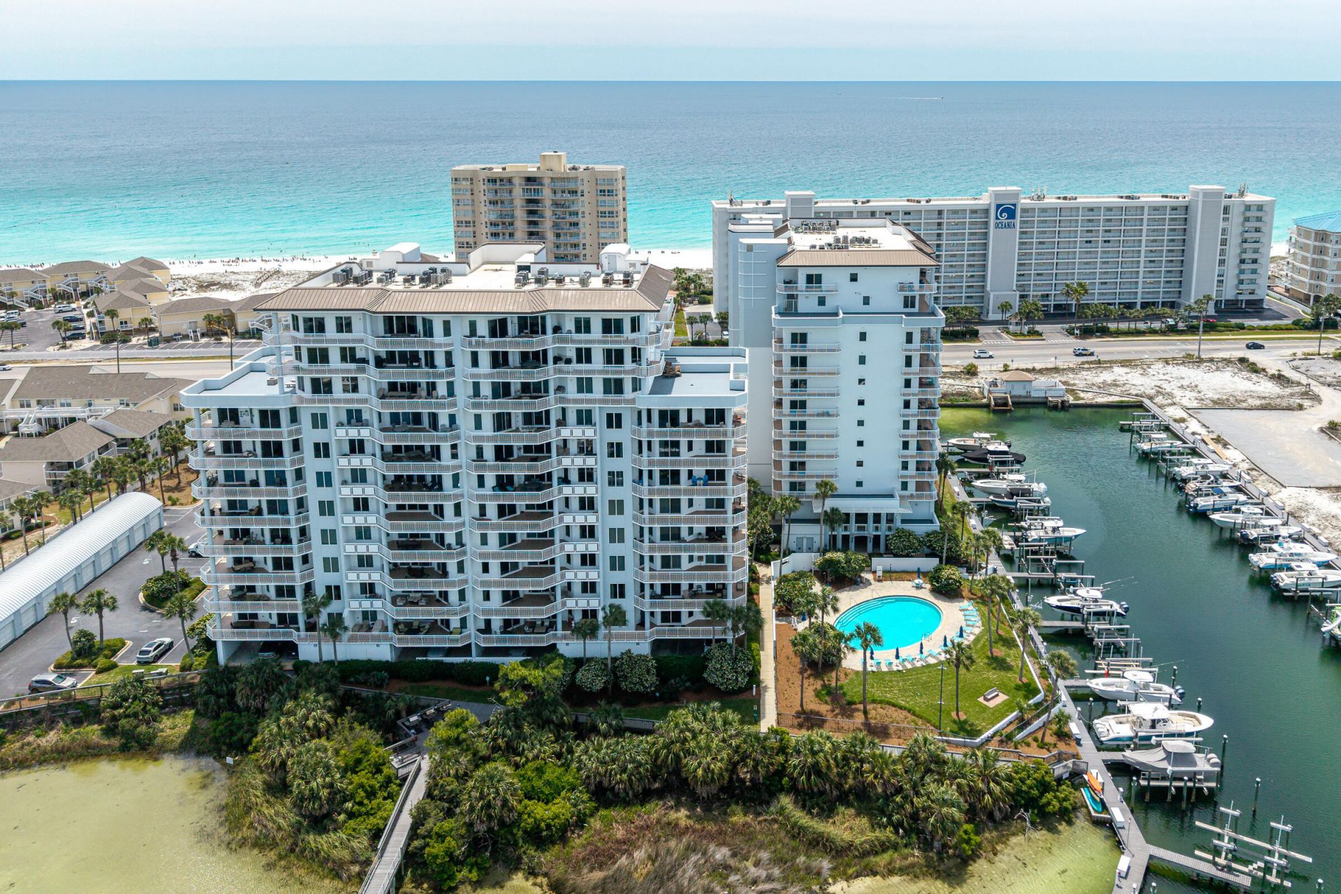 Experience the best of coastal living in this 2-bedroom, 2-bath west-facing condo on the harbor on Holiday Isle. Enjoy stunning sunsets and tranquil water views from your private retreat, perfectly positioned in a gated community just steps from the white sands and emerald waters of the Gulf. Inside, the open floor plan creates a bright and inviting space, complemented by updated appliances and comfortable living areas, ideal for relaxing or entertaining. Step out onto your private waterfront balcony--the perfect place to unwind and take in breathtaking sunset views over the harbor, offering a front-row seat to some of the most beautiful evenings on the Emerald Coast. Owners have one covered parking spot. There are two swimming pools, one is exclusive for owners, and a fitness center. The well-stocked kitchen boasts granite counters, stainless LG appliances and a spacious breakfast bar, flowing to a roomy dining area, and spacious living area. The primary suite has a peek of the gulf, nice harbor views and features a walk-in closet, jetted tub and separate walk-in shower. The guest bedroom has a full ensuite bath. There is also a locked outside storage area near the entrance door. The exterior of the condo building has been recently painted, adding to it's fresh, well-maintained appeal. Located just minutes from all of the harbor's dining, entertainment, and water activities, this condo offers both convenience and an unbeatable lifestyle. Whether you're seeking a short-term rental investment, a second home, or a full-time residence, this exceptional property checks every box.