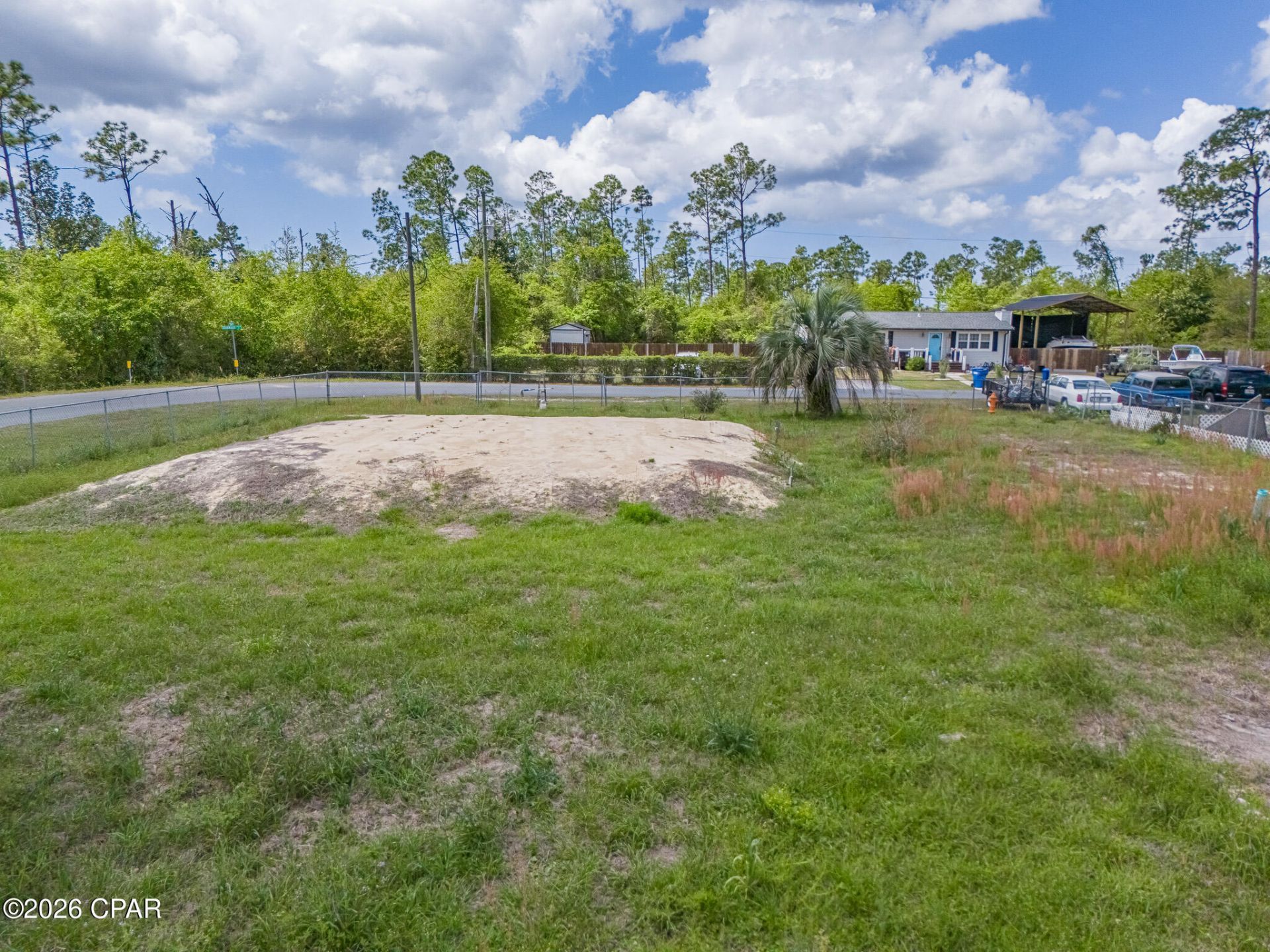 Level and well-prepared 1/4 acre Corner lot. Brand new $17,000. fully permitted 1,050 gallon septic tank with drain fields that allow a home as large as 2,550 sq. ft. Pad site prepped with enough fill dirt to not require a pump or have a mound appearance. Chain link fenced with front entrance, double gate on the side and a dog run. Concrete pad site for a shed also.