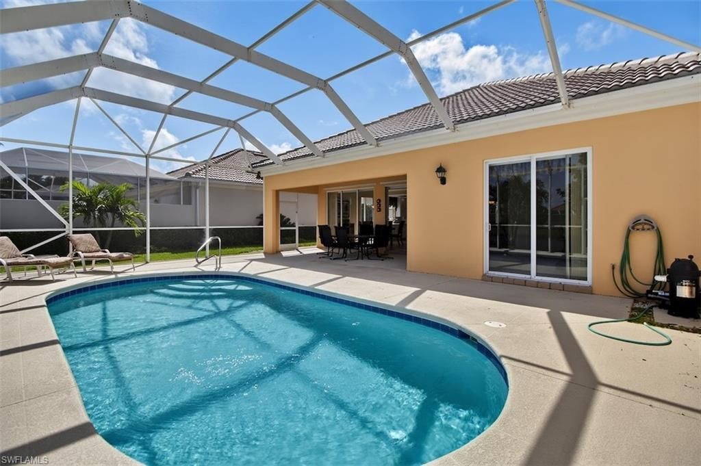 One or more photo(s) has been virtually staged, AI generated or rendered. OAKMONT MODEL WITH POOL, " Built Solid Poured Concrete with newer Roof , This 3Bdrm Plus den 2.5 Bath has custom features: Crown woodwork in foyer with Crown molding through-out the Home You can purchase a Better Built Home This original owner , slightly use This residence showcases the timeless quality and features you simply can’t replicate in today’s newer Divosta construction—highlighted by 12’ and 10’ ceilings, poured concrete walls, and smooth-coat interior walls, custom closet systems, central vacuum, and a 6-foot privacy wall on the back lanai, creating a secluded outdoor retreat around your pool. Located in the highly desirable VeronaWalk, residents enjoy a true resort lifestyle with a 24-hour guarded gate, lighted tennis, pickleball, bocce, and basketball courts, a resort-style lagoon pool and lap pool, and over 20 miles of scenic walking and biking trails. The vibrant Town Center features a fitness center, café/restaurant, ice cream shop, post office, hair salon, library, computer center, ballroom, card rooms, plus a full-time activities director. Additional conveniences include gas station within the community. Ideally located just 15 minutes to Downtown Naples and 1)Marco Island beaches, with shopping, fine dining, a Regional hospital, and FSW State College nearby. Low HOA fees include lawn care, irrigation, and basic cable, internet—making this an exceptional value for full-time living or seasonal enjoyment.