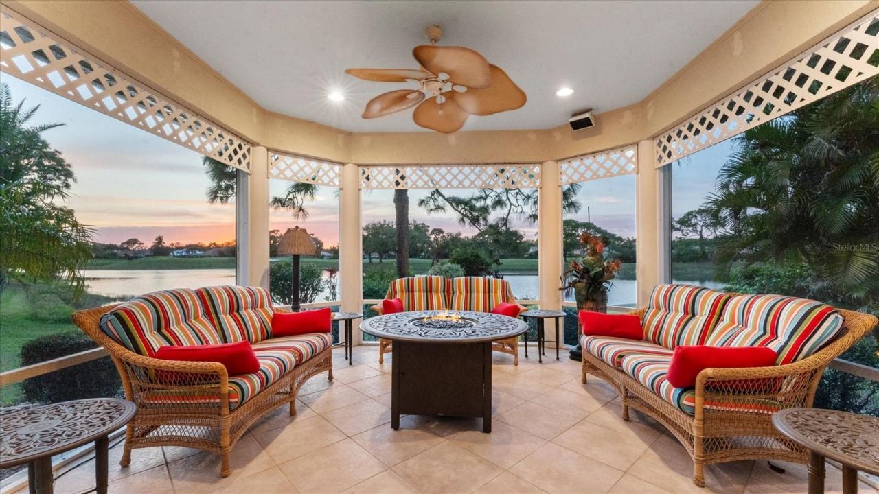 Located in the award-winning University Park Country Club, this exceptional custom-built Najjar estate offers the epitome of elegant living with 3 bedrooms, 4.5 baths, two offices, and an oversized 3-car garage, all positioned to capture spectacular lake views. A pavered circular driveway, along with a separate driveway to the garage, create an impressive arrival. The grand entry features double wood doors with leaded glass sidelights and a dramatic arched transom, opening to spacious living and dining areas with custom built-ins, architectural details, gas fireplace, crown molding, stepped tray ceiling and a fully retractable quad sliding glass door opening seamlessly to the lanai. A well-appointed butler's pantry with refrigerator, wine fridge, sink, and abundant cabinetry provides additional convenience for entertaining.The eat-in kitchen and family room form the heart of the home and feature custom wood cabinetry, center island, raised breakfast bar and a walk-in pantry, while an aquarium window overlooks the lanai. Fully retractable quad and double corner sliding doors create effortless spacious indoor-outdoor living.The primary suite offers a private retreat with a luxurious bath featuring a soaking bubble tub by a private window with statue and water feature, two vanities, and a walk-in shower with bench. The spacious walk-in closet includes extensive built-ins and a concealed safe. An adjoining bonus room with mirrored closets and floor-to-ceiling windows overlooking the pool offers flexibility for a fitness room, lounge or dressing room. Nearby, a private office with built-ins and large windows provides an ideal workspace.The guest wing includes two generous guest bedrooms with new carpet and ensuite baths. A second office with two walls of built-ins and large windows with tropical lake views offers additional flexibility. A full bath with direct pool access and a separate half bath add convenience.The outdoor living area is the true highlight, featuring a spacious lanai with two covered seating areas and a large outdoor kitchen with grill, full-size refrigerator/freezer, sink, granite counters, raised breakfast bar, and ceiling fan. The adjacent covered loggia provides seating, shades, ceiling fan, and fire table. The infinity-edge pool includes continuous seating, an in-water bar table with umbrella, and an attached spa with fountain, while an outdoor shower surrounded by tropical plantings and sculptures enhances the resort-style setting.Additional features include hurricane protection for all windows and most of the lanai, whole-house gas generator, three HVAC units, new pool pump, landscape lighting, irrigation system, lightning rods, solar attic fans with radiant barrier, Culligan water system, recessed, accent and uplighting throughout, central vacuum, alarm system, and a large air-conditioned storage room in the epoxy-coated garage.With exceptional craftsmanship, remarkable outdoor living spaces, and serene lake views, this extraordinary estate must be experienced in person to truly appreciate all it offers.University Park Country Club is consistently ranked one of the top courses in Florida featuring 27 holes of championship golf, tennis and pickleball, fitness center, croquet and an array of social and group activities. Enjoy the restaurant with the required minimum of a Social membership. Convenient to I-75, downtown Sarasota, surrounding beaches, and University Town Center.