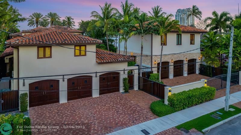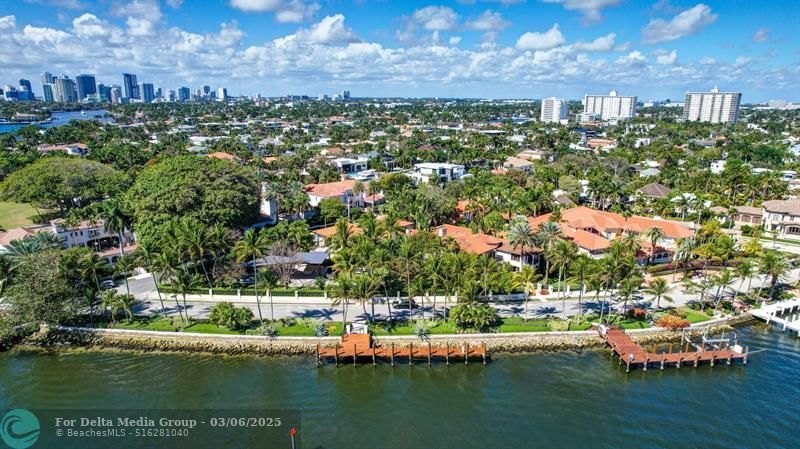 Magnificent two-parcel .82 acre Idlewyld waterfront estate with over 14,000 sf in total. Ultimate deep water compound! 338ft+/- straight-line waterfront (no wake) with two docks. Main house 6,336 sf under air with 2,050 sf covered outdoor living off Chef’s kitchen, fully renovated and expanded in 2012 with option for apartment over garage. In 2018, guest house with pool pavilion added, 1,330 sf under air plus 2,504 sf terraces with dining bar for 18, caterer’s kitchen, cabana, gym, and office. Estate includes 2,029 sf of air-conditioned garage space for seven cars. Walled and gated for privacy, award-winning grounds and rare tropical landscaping surround two pools and spa. Timeless Marc Michaels design with custom detailing and high-quality finishes throughout.