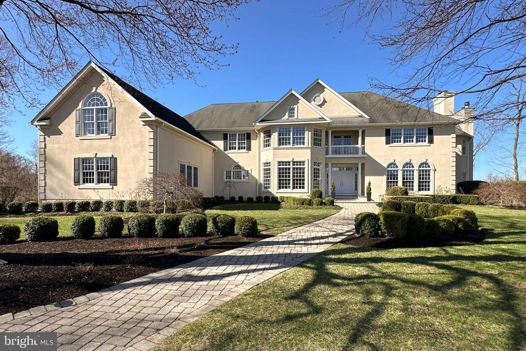 Anchoring a picturesque cul-de-sac in an estate-style Montgomery Township enclave, this striking home is defined by soaring ceiling heights and a luminous, all-white palette that amplifies light and space at every turn. A dramatic two-story foyer with a sweeping butterfly staircase sets the tone, opening to interiors that feel both refined and effortless. At the heart of the home, the marble-dressed kitchen openly flows into the great room, which rises to impressive heights, wrapped in expansive windows that frame long, scenic views and flood the whole space with sunlight. Step out to the stone terrace, the stage for magical sunsets and memorable summertime entertaining. The private, resort-like backyard is surrounded by bucolic rolling land with a free-form pool and spa as the centerpiece. A pool house with a kitchenette and half-bath is as darling as it is functional. The home’s thoughtfully designed layout includes a first-floor guest wing complete with its own fireplace, offering comfort and privacy for visitors. Upstairs, the primary suite is elevated by a chic, new bathroom with a luxurious rain shower and heated tile. This palatial retreat also boasts a sunlit sitting area, fireplace and generous walk-in closets. Additional bedrooms are well-proportioned, while an enormous bonus room invites epic sleepovers and imaginative play. The three-car garage and full semi-finished basement easily store seasonal items and more. Just moments from the area schools and the recreational offerings of Bedens Brook and Cherry Valley Country Clubs, this home blends architectural character with everyday enjoyment, all while being only 2.2 miles from Brick Farm Tavern and 6 miles from downtown Princeton.