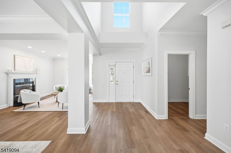 Welcome to this spacious 4 bedroom, 2.5 bath colonial style home set in desirable Reservoir Ridge. This home offers three finished levels of living space and a functional, flexible layout ideal for today's lifestyle. The main level features a brand new, completely renovated eat in kitchen with custom cabinetry, quartz countertops, and stainless appliances, along with a sunlit dining area and glass doors leading to the patio. The kitchen flows seamlessly into a bright great room with an abundance of windows and a wood burning fireplace, perfectly capturing the scenic backdrop. A spacious main floor primary suite offers a stunning new bathroom with a floating tub and step free shower. A formal living room with a second wood burning fireplace, dining room, laundry room, mudroom, and powder room complete the first level. Upstairs are three spacious bedrooms and another full bath. The home features new flooring throughout and has been professionally painted, creating a fresh, move in ready feel. The finished basement offers approximately 1000 sq ft of additional living space, a wet bar, and cedar closet, ideal for recreation, gym, or guests. Additional highlights include a two car garage, new roof, new HVAC, new HWH, and rare lift access from the garage to the main level. Ideally located with easy access to major highways, shopping, dining, and public transportation, this home is perfectly situated for today's commuter.